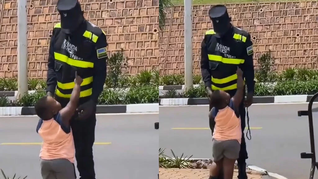Ku mbuga nkoranyambaga hakomeje kuzenguruka amashusho agaragaza umupolisi wo mu muhanda yahuje urugwiro n’umwana muto cyane waje umusanga ubwo yari ari gucunga umutekano mu mihanda ya Kigali muri iki gihe cy’amasiganwa y’amagare ku rwego rw’isi.
